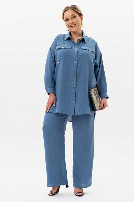 Ищешь стильный и универсальный костюм на любой случай? Женский брючный костюм из лёгкой ткани – превосходное решение для летнего гардероба! В костюм входят брюки на резинке с карманами-хулиганами и рубашка с длинным рукавом и застежкой на петли и пуговицы. На рубашке обработаны нагрудные накладные карманы с клапаном. Рукав на манжете. Оба изделия можно носить как самостоятельные и вписывать их в абсолютно любой образ, будь то деловой, офисный, повседневный городской, спортивный, пляжный или вечерний. Костюм сшит из невесомого материала, в состав которого входят хлопок и лен. Свободный, прямой крой хорошо садится на любой рост и тип фигуры, худых и полных, высоких и невысоких женщин и девушек. Модель оверсайз позволит чувствовать себя комфортно и удобно. Эта необычная однотонная двойка без принта не выйдет из моды и будет актуальна во все времена, подойдёт на все случаи жизни. В наличии ультрамодные и классические расцветки. Жакет и брюки состоят из натуральной и легкой ткани, которая позволит Вашей коже дышать в жаркие дни. Большие размеры и свободный крой обеспечат максимальный комфорт и свободу движений.