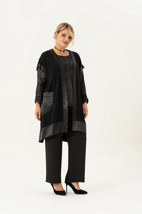 Вы ищете стильный и современный комплект для Дня рождения, корпоратива, Нового года? У нас есть идеальное предложение для Вас - комплект -тройка большого размера, который состоит из кардигана, брюк и ,блузы с длинным рукавом. Вся одежда изготовлена из ткани, обладающей высоким качеством. Важно отметить, что наш комплект-тройка доступен в больших размерах, модель подчеркнет Ваши достоинства и сделает Вас неподражаемой на любом мероприятии и также в повседневной жизни. Брюки прямого силуэта, на резинке не будут сковывать движения. Кардиган выполнен в сочетании двух тканей: шифона и атласа, со спущенной линией плеча. На полочке обработаны накладные карманы, декорированные патой на петлю и пуговицу. Лонгслив изготовлен из тонкого трикотажного полотна с блестящим напылением, напыление не осыпается! Блуза можно скомплектовать с чем-угодно – важно только Ваше чувство стиля и погода за окном. Такой комплект просится в Ваш гардероб и сделает Вас неотразимой!