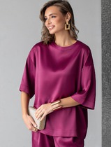 Элегантный женский брючный костюм  — настоящая находка для тех, кто ищет идеальный образ на праздник, свадьбу или важный вечер. Классический крой и свободные брюки палаццо подчёркивают достоинства фигуры и дарят комфорт. Нарядный и вечерний стиль — безупречно смотрится на большом мероприятии, создавая образ, полный уверенности и шарма. Блуза выполнена из шелковистой ткани с приятной фактурой. Блузка с длинными струящимися рукавами выглядит очень изящно и очаровательно. Блузка без воротника, застежка на петли и пуговицы по планке, с V – образным вырезом горловины. Спинка с декоративным элементом из паеток. По переду вдоль планок заложены складки и обработан кант из паеток. Изделие  асимметрично  по низу. Боковые швы перенесены в линию рельфа полочки и спинки. В рельефах полочки обработаны разрезы. Рукав со складкой по шву притачивания манжеты. Прямого силуэта с втачным , длинным рукавом. Брюки с широкими штанинами палаццо выгодно подчеркивают женственные формы, а свободный крой обеспечивает удобство в любой ситуации. На брюках обработаны карманы в боковых швах, по талии пояс с застежкой на молнию  и частично на резинке. Красивая двойка строгого силуэта — идеальное сочетание для торжеств и даже для делового офисного дресс кода. Подходит для женщин больших и полных размеров, продуманный крой визуально стройнит, подчёркивает талию и скрывает лишнее. Создайте идеальный образ — выберите стильный женский нарядный костюм с брюками палаццо и подчеркните свою индивидуальность!