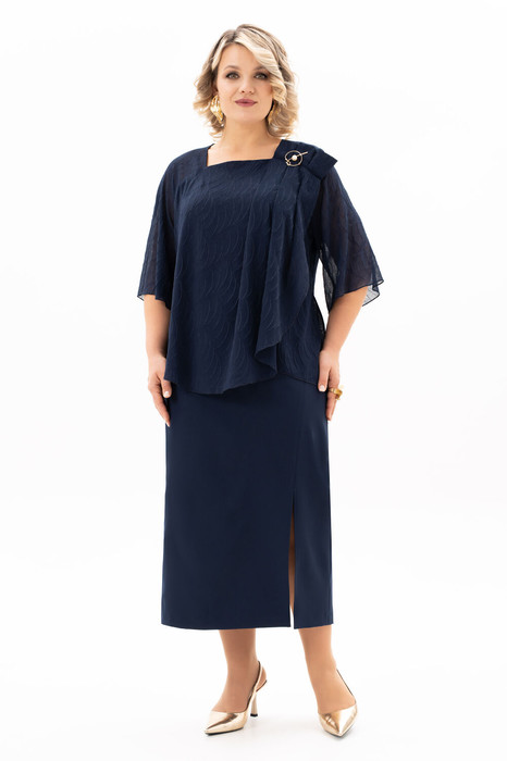 В мире моды женский костюм, состоящий из юбки и блузы, занимает особое место, объединяя элегантность, комфорт и практичность. Наш костюм, выполненный из высококачественной ткани c стрейч-эфектом.  На полочки блузы есть нагрудные выточки с проймы, фигурный вырез горловины. Верхняя часть переда блузы декорирована мягкими складками и съёмной брошью, в боковых швах разрезы. Спинка без среднего шва. Модель блузы имеет  и втачной  рукав и реглан, длиной 3/4. Юбка  демонстрирует утончённый дизайн с небольшим разрезом,  который добавляет нотку игривости и женственности. Разрез не только  делает образ более динамичным , но и придаёт ему определённую изюминку, позволяя Вам чувствовать себя уверенно и раскрепощено .  Удобная и комфортная юбка на подкладке, слегка заужена к низу с застёжкой сзади на молнию и пуговицу. По поясу в области боковых швов есть эластичная тесьма, которая создаёт удобную посадку юбки на талии. Отличный вариант для офиса и вечернего гардероба, а также и просто для повседневного применения. Грация, изящество, утончённые декоративные элементы делают этот костюм уникальным. В этом костюме  Вы будете неотразимы как в повседневной  жизни, так и на любом торжестве.