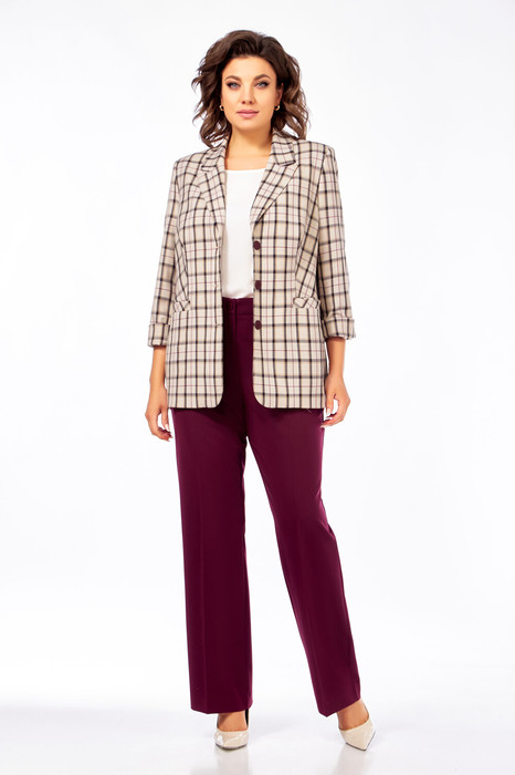 Костюм Olga Style С918 клетка/бордовый