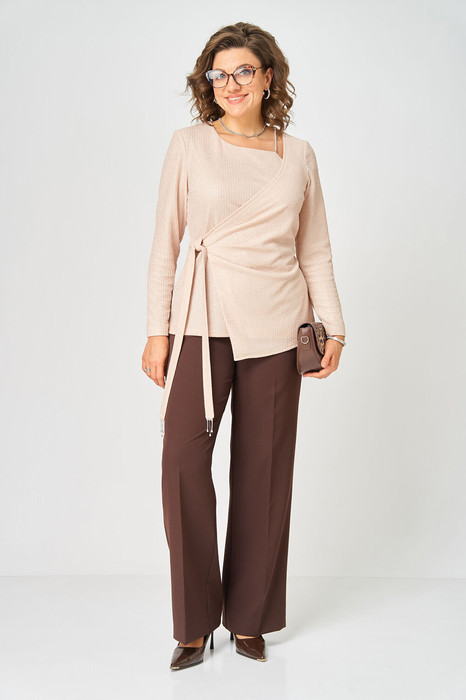 Комплект женский, состоящий из блузы трикотажного полотна с блеском и брюк из костюмной ткани.