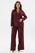 Комплект женский из трикотажного полотна для повседневной носки. Комплект состоит из брюк и джемпера. Джемпер свободный с длинным рукавом. Горловиа круглая. На передней и задней частях джемпера есть рельефные швы. Брюки прямые длинные на резинке, с боковыми карманами в боковых швах.