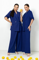 Длина жакета по спинке около 48 см в размерах 40-46 и около 51 см в размерах 48-52, длина рукава около 65 см. Длина юбки по боковому шву с поясом около 46 см в размерах 40-46 и около 49 см в размерах 48-52 см.