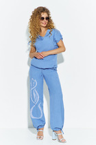 Детали: пиджачный воротник, перед с функциональными карманами, застежка на одну петлю и пуговицу, рукава втачные двухшовные, спинка с рельефами и резинкой по талии. Жакет на подкладке. Юбка с высокой посадкой на притачном поясе, потайная застежка в боковом шве, трикотажная подкладка.