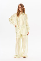 Длина жакета по спинке около 66 см в размерах 40-46 и около 69 см в размерах 48-52, длина рукава около 61 см. Длина брюк по боковому шву с поясом около 96,5 см в размерах 40-46 и около 98 см в размерах 48-52. Длина по внутреннему шву около 69 см.