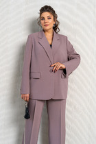 Длина жакета по спинке около 72 см в размерах 40-46 и около 74 см в размерах 48-52, длина рукавов около 62,5 см. Длина брюк по боковому шву с поясом около 99 см в размерах 40-46 и около 100,5 см в размерах 48-52, длина по внутреннему шву около 70 см.