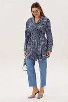 Длина жакета по спинке около 69 см в размерах 40-46 и около 71,5 см в размерах 48-52, длина рукава около 61,5 см. Длина брюк по боковому шву с поясом около 99 см в размерах 40-46 и около 100,5 см в размерах 48-52, длина по внутреннему шву около 69,5 см.