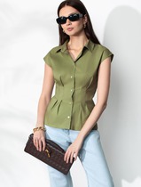 Блузка приталенного кроя с коротким рукавом из легкого хлопкового поплина с элас