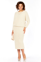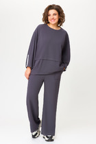 Костюм предназначен для повседневной носки. Костюм женский 2-х предметный блузон и юбка. Блузон полуприлегающего силуэта, длиной до линии бёдер. Перед с 2-мя отрезными бочками, со средним швом, заканчивающимся разрезом. Спинка со средним швом. Горловина круглая, обточная, без воротника. Застёжка на втачную металлическую молнию в среднем шве переда. Рукав втачной, 2-х шовный, длиной 3/4, внизу с горизонтальным подрезом, отделочной вставкой из еврофатина. Блузон с плечевыми накладками. Юбка длиной до нижней части икры расклешённая к низу из отделочнойткани. Переднее и заднее полотнища цельнокроенные. Юбка с притачным поясом, собранным на эластичную тесьму. Юбка без подкладки. К костюму прилагается обтачной пояс, фиксирующийся на обтяжную пряжку и 5-ть пробивных блочек. Длина спинки блузона 54,5 см, длина рукава 42 см. Длина юбки по боковому срезу 81 см.