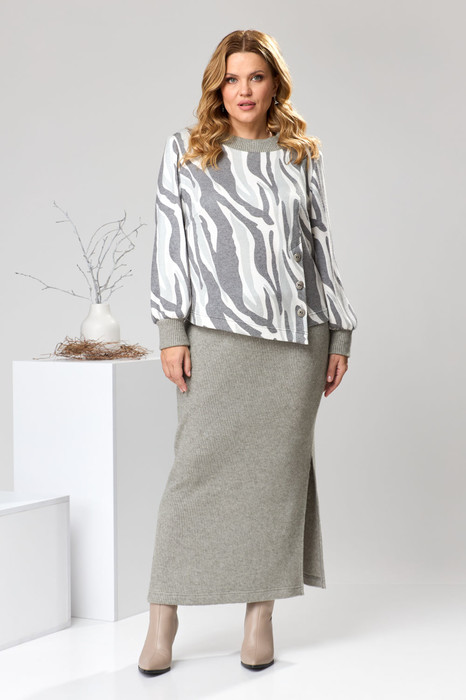 Состав: Джемпер- Вискоза-30%; ПЭ-65%; Эластан-5%; Юбка- Вискоза-25%; ПЭ-70%; Спандекс-5%;