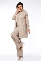 Комплект женский, относится к торжественно-нарядной одежде. Комплект женский, 2-х предметный, жакет и платье. Жакет женский прямого силуэта, длиной до линии талии, выполнен из кружевного полотна. Перед с 2-мя нагрудными вытачками, с 2-мя притачными вертикальными планками, с притачными планками по горловине. Спинка с притачной планкой по горловине. Горловина круглая, обточная, без воротника. Застёжка на декоративный пришивной крючок. Рукав втачной одно шовный, длиной 3/4 с притачной манжетой. Жакет без плечевых накладок. Платье женской длиной за колено, полу прилегающего силуэта. Перед с 2-мя отрезными бочками. Спинка с 2-мя таллиевыми вытачками, со средним швом, заканчивающимся шлицей. Горловина круглая, обточная, без воротника. Застёжка на потайную тесьму-молнию в среднем шве спинки. Рукав втачной, короткий, одно шовный. Платье с плечевыми накладками. Длина спинки жакета 45 см, длина рукава 41 см. Длина спинки платья 100 см, длина рукава 19 см.