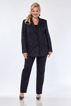 Брючный комплект из костюмной ткани на подкладке.  Жакет прямого силуэта с двумя наклонными вытачками и карманами в боковых швах. Рукава - длинные, двухшовные. Жакет застегивается на 1 пуговицу. Цветок ручной работы  в виде пиона станет украшением комплекта.  Брюки слегка заужены к низу, с двумя наклонными карманами и поясом.  Застегиваются на молнию по переду и  одну пуговицу.