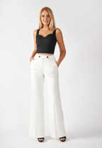 Комплект, состоящий из блузы и брюк. Блуза выполнена из тонкой шелковистой ткани. Пройма спущена, рукава - длинные с широкими манжетами. Роскошный воротник добавит яркости образу. Блуза застегивается на пришивные кнопки. Брюки из костюмной стрейчевой ткани, с двумя карманами и поясом-обтачкой. Застегиваются на молнию по переду и пуговицу. Комплект можно разнообразить поясами разного цвета. Пояс в комплект не входит.
