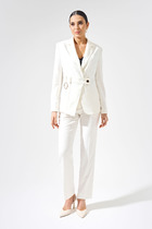 Модный костюм позволит Вам превосходно выглядеть, как на прогулке, так и на торжестве. Оба изделия можно смело комбинировать с другими вещами и обувью Вашего гардероба. Длина брюк по боковому шву с поясом 112 см. Длина блузы по центральному шву спинки с поясом 59 см. Длина рукава от основания шеи 44 см.