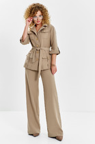 Брюки свободного кроя, функциональные карманы по передним половинкам. Низ брюк модельный. Пояс частично на резинке.