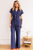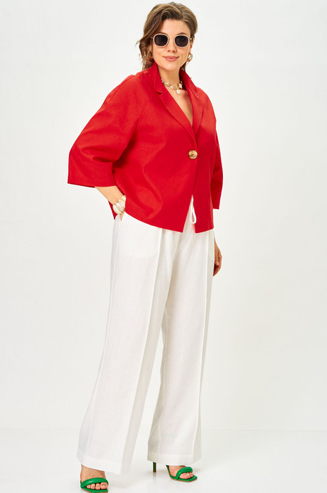 Комплект  брючный  летний . Состоит из жакета выполненного  изо льна. Свободная посадка, жакет без подкладки. Рукав реглан. Застежка на одну пуговицу.