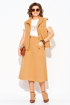 Костюм майка с шортами. Майка с подрезом под грудью, кокетка притачена внахлест и закреплена тремя пуговками. Горловина и проймы обработаны окантовкой, окантовка вышита мережкой. Шорты свободного покроя, боковые швы зашиты внахлест. Шорты обработаны окантовкой с мережкой.