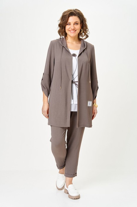 Костюм женский трехпредметный, состоящий из кардигана, топа и брюк.