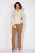Брюки прямые с карманами в боковых швах. По низу небольшой разрез. Пояс притачной с резинкой(по центру гладкий)По бокам брюк и по центру рукавов втачные отделочные лампасы с контрастным кантом.