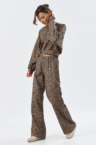 Бомбер и юбка выполнены из бархатистой эко-замши на трикотажной основе. Бомбер на застёжке-молнии. На полочках обработаны нагрудные вытачки и прорезные карманы с листочкой. Рукав втачной, длинный. Низ рукава, горловина и низ бомбера оформлены трикотажным полотном.