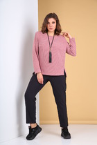 Брюки прямые, на поясе с резинкой и протянутым шнурком (из основной ткани), с имитацией гульфика. На передних половинках обработаны внутренние карманы.