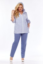 Стильный комплект-двойка, состоящий из рубашки и брюк. Модель свободного кроя из «Тиффани»- хлопкового джинса со стрейчем. Такой комплект идеально подходит для повседневной носки и сочетается с любой обувью и аксессуарами.