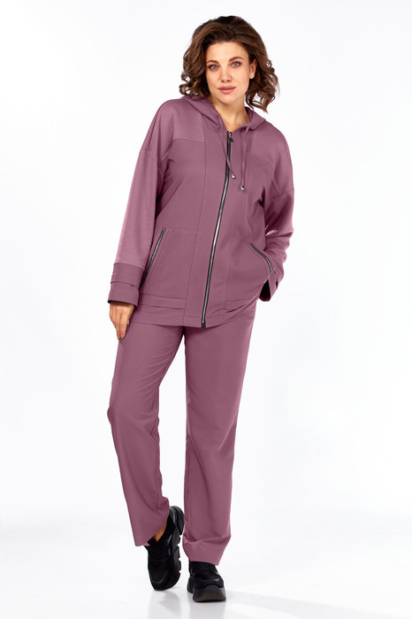 Комфортный комплект-двойка для повседневных дел и отдыха. Модель свободного кроя, комбинированная из двух видов ткани(текстиль «Монако» и хлопковый трикотаж трёхнитка). Натуральная фактура материалов делает образ не только стильным, но и удобным. Жакет-худи с центральной застёжкой на молнию, имеет спущенную линию плеча. На переде обработаны кокетки, планки, накладные карманы с отделочной тесьмой, по низу застрочены декоративные складки. Спинка с кокеткой и средним швом. Рукав спущенный, длинный, на манжете заложена декоративная складка. Горловина обработана притачным капюшоном с кулисой.