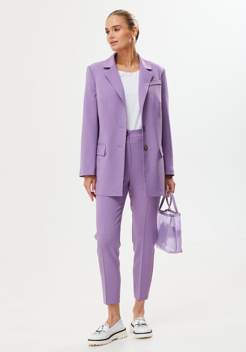 Костюм женский брючный двухпредметный от белорусского производителя - находка для любительниц свежих образов. Легкий сиреневый оттенок привлечет внимание окружающих и вдохновит на смелые достижения. Комплект отлично сочетается с базовыми цветами. Пиджак можно носить, как с брюками, так и с юбками. Элегантный костюм отлично сочетается с классическими блузками и топами. В нем будет комфортно в весеннюю погоду.