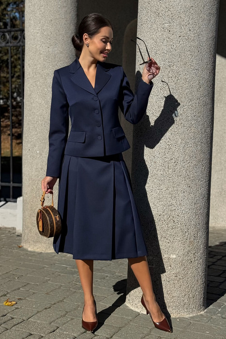 Классический костюм женский с юбкой от URS / ЮРС — безупречный выбор для тех, кто ценит элегантность, строгость и комфорт. Этот деловой костюм состоит из жакета и юбки миди, выполнен из качественной ткани с добавлением шерсти. Костюм женский 2-х предметный, состоящий из жакета и юбки выполненных из костюмно-плательной ткани, предназначен для повседневной носки.