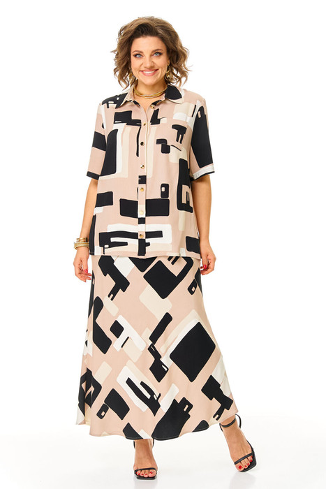 Комплект женский состоит из блузки и юбки.