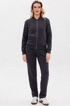 Костюм женский, состоящий из блузки и брюк-кюлот. Блузка свободного силуэта. Горловина округлой формы с отложным воротником на стойке фигурной формы переходящим на спинку из отделочной ткани. По спинке вырез капелька с застёжкой на пуговицу, спинка со средним швом. Рукав цельнокроены с со сборкой на притачной манжет по низу. Боковой шов слегка переходит на перёд. Низ в блузке ассиметричный с разрезами в боковых швах. Брюки-кюлоты свободного силуэта, длиной 7/8 расширяются к низу. Пояс притачной со вставкой эластичной тесьмы-резинки, которая обеспечивает максимально удобную посадку на любой тип фигуры. По переду брюк от верха застрачиваются складки. В задней части брюк застёжка на тесьму-молнию в шве и пуговицу в поясе. В боковых швах брюк- карманы.