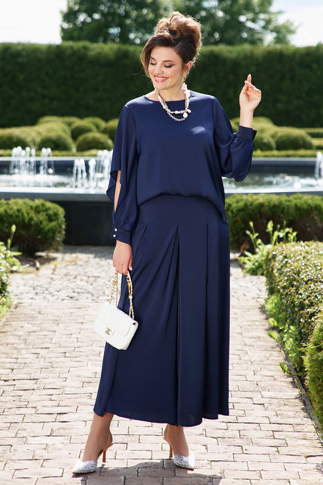 Данный костюм отлично подходит для торжественных мероприятий, свиданий, работы в офисе если дополнить его соответствующими аксессуарами и обувью Блузка свободного силуэта, с фигурной линией горловины по форме «лодочка»; по переду блузки нагрудные вытачки. По спинке блузки вырез капелька с застёжкой на пуговицу. Рукав втачной, длинный с фигурным вырезом, по низу рукава манжета с застёжкой на петли пуговицы. Брюки-кюлоты свободного силуэта, длиной 7/8 расширяются к низу. Пояс притачной со вставкой эластичной тесьмы-резинки, которая обеспечивает максимально удобную посадку на любой тип фигуры. По переду брюк от верха застрачиваются складки. В задней части брюк застёжка на тесьму-молнию в шве и пуговицу в поясе. В боковых швах брюк - карманы. Длина блузки от высшей точки плечевого шва до низа 60 см (р 50-54), 61 см (р 56-60). Длина рукава 61 см (р 50-54), 62 см (р 56-60). Длина брюк по боковому шву от шва притачивания пояса 93 см (р 50-54), 94 см (р 56-60).