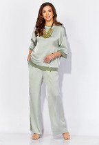 Костюм женский, состоящий из жакета и юбки. Жакет полуприлегающий, однобортный с акцентом на ровную линию плеч, с цельнокроеными лацканами и застёжкой на декоративные пуговицы по краю борта. По переду жакета талиевые вытачки и накладные карманы фигурной формы. Рукав втачной, двухшовный, длиной 3/4 с отлетной шлицей в шве и отделкой в виде декоративных пуговиц. Спинка со средним швом и талиевыми вытачками. Жакет на подкладке.Юбка-карандаш идеально дополняет жакет, обрисовывая стройные линии. Юбка прямого силуэта, заужена к низу, с притачным поясом со вставкой эластичной тесьмы в боках пояса, что обеспечивает удобную посадку на фигуру. В среднем шве юбки застёжка на тесьму молнию, от низа отлетная шлица. Юбка на подкладке. Обращаем Ваше внимание, что фурнитура может незначительно отличаться от фото. Длина жакета по спинке 60 см (р 52-56), 60,5 см (р 58-62), длина рукава 51 см. Длина юбки 76 см.