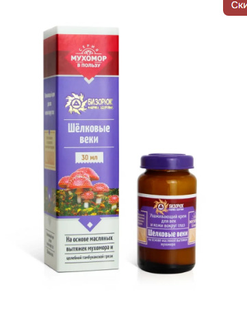 Совместные покупки Курган Косметика и парфюмерия Уход за ногами — Крем оздоровительный мухомор Шелковые веки, стекло, 30 мл, "Бизорюк"
