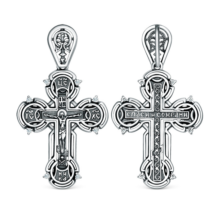 Совместные покупки Курган Ювелирные украшения и бижутерия Подвески — Крест из чернёного серебра с фианитами - Спаси и сохрани, 4 см ПР-151ч