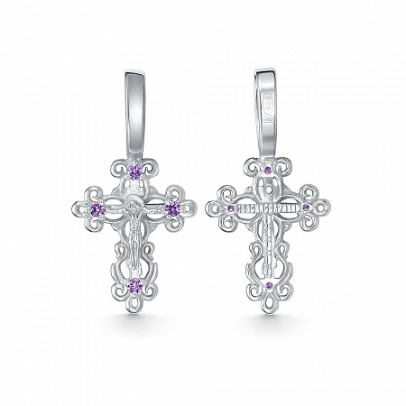 Крест из серебра литье с фианитом аметист