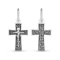 Крест православный из чернёного серебра - Спаси и сохрани 3,2 см 925 пробы 3-553