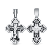 Крест двусторонний из чернёного серебра - Спаситель, Ангел-Хранитель 3,1 см Г-16