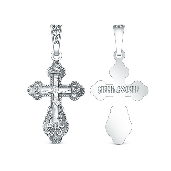 Крест православный из чернёного серебра - Спаси и сохрани, 3,3 см 00-0012-2