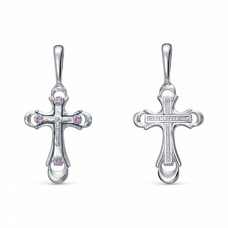 Крест с фианитом родированный серебро 925*