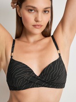 Лиф «бандо» с вшитыми формованными чашками обеспечивает комфортную поддержку и создает эффект округлой груди. Регулируемые бретели отстегиваются. Плавки «слипы» со средней линией талии эффектно подчеркивают бедра.