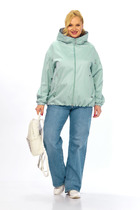 Куртка женская свободного силуэта, застежка молния, рукав втачной с манжетом на резинке, на полочке подрез с карманом. Куртка на подкладке, с капюшоном, по низу куртки и на капюшоне кулиска.