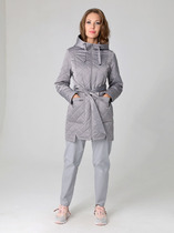Демисезонная удлиненная куртка с втачными рукавами  подойдет для женщин и девушек любого возраста.  Застежка на двухзамковую молнию позволяет  легко расстегнуть куртку как сверху, так и снизу.   Воротник - стойка, переходящая в капюшон. Удобно расположенные накладные карманы имеют два функциональных входа: верхний и боковой, который фиксируется кнопкой. Есть внутренний кармашек на молнии. Линию талии, при желании, можно подчеркнуть поясом. Эта легкая стильная куртка с разноуровневой линией низа  выручит Вас на прогулке, на отдыхе и в городе.  Стеганная плащевая ткань имеет водоотталкивающую пропитку, которая выдержит небольшой дождь и легкий ветер. Хорошо зарекомендовавший себя утеплитель Холлофайбер плотностью 100 гр/м защитит от весенней прохлады. Подкладка в изделии - в мелкую полоску.  Фантазируйте с обувью и аксессуарами, и эта лаконичная по стилю  куртка станет незаменимой частью Вашего гардероба.