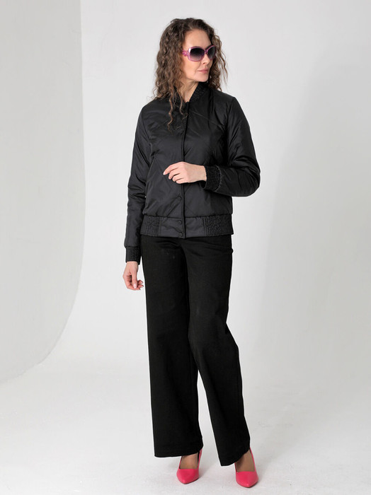 Модная демисезонная куртка прямого силуэта с застежкой на кнопки подойдет для женщин и девушек любого возраста. Прорезные карманы застегиваются на  молнию. Есть внутренний кармашек, тоже на молнии. Эта легкая весенняя куртка-бомбер с эффектной резинкой на поясе, манжетах и стойке выручит Вас на прогулке, на отдыхе и в городе.  Плащевая ткань имеет водоотталкивающую пропитку, которая выдержит небольшой дождь и легкий ветер. Хорошо зарекомендовавший себя утеплитель Альполюкс (с содержанием овечьей шерсти), плотностью 100 гр/м, защитит от весенней прохлады. Подкладка в изделии выполнена из ткани в мелкую полоску. Фантазируйте с обувью и аксессуарами, и эта стильная куртка станет любимой вещью Вашего гардероба.