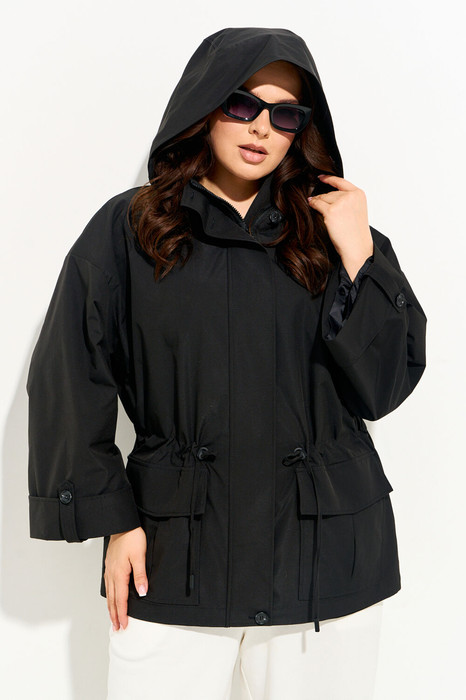 Женская демисезонная куртка на подкладке свободного силуэта с капюшоном выполнена из плащевой ткани с водоотталкивающим эффектом. По переду изделия накладные карманы; фукциональная кулиса; рукава втачные со спущенной линией плеча, внутренней патой и манжетой, что позволяет регулировать высоту рукава и представляет собой стильную деталь с изысканным акцентом; застежка на молнию, петли и пуговицы. Куртка полностью соотвествует заявленному размеру.