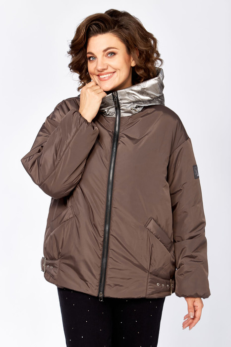 Куртка выполнена в стиле активной зимней одежды, сочетая практичность с элементами модного дизайна. Черный цвет с серебристым отливом капюшона придает изделию элегантный вид. Строгий, но при этом уютный силуэт куртки обеспечит комфорт. Молнии и другие металлические элементы придают ей спортивный и стильный акцент, а утеплитель синтепон  150 г./м.кв. создает необходимое тепло без лишнего объема.