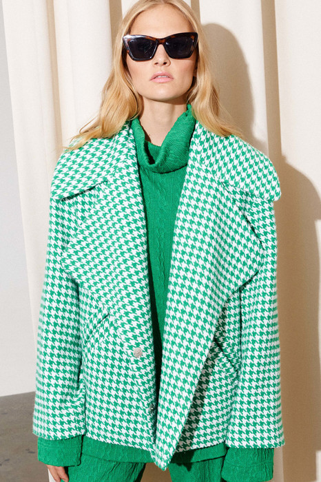 Куртка Lokka 1217Т бежевый+зеленый/принт гусиная лапка