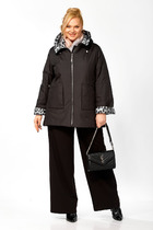 Куртка свободного кроя, длиной выше бедер. Спинка со средним швом и отлетной кокеткой. Перед с отлетной кокеткой и рельефом, в котором обработаны карманы. Рукава двушовные, втачные, длинные. По горловине воротник на отрезной стойке. Застежка по переду на кнопки. Куртка на подкладке и с плечевыми накладками