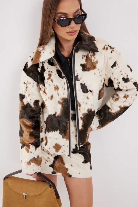Куртка укороченная из ворсовой ткани. Застёжка на молнию. Воротник отложной. По переду прорезной карман с листочкой. Рукав прямой, спущенная линия плеча. Куртка на подкладке.